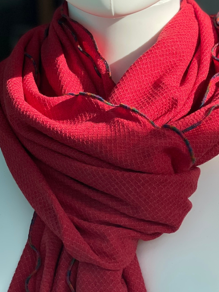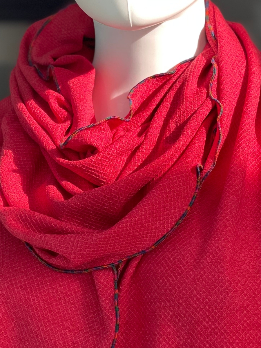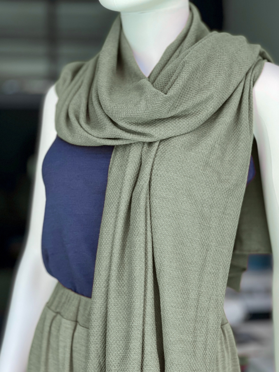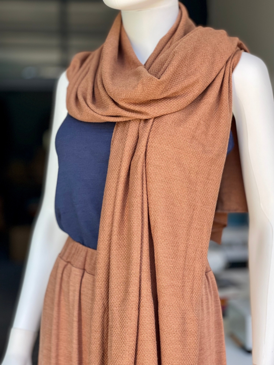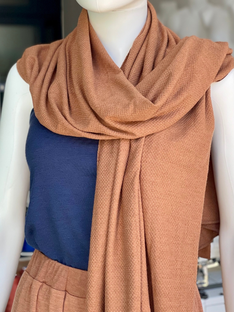 Autour du cou, posé sur les épaules ou enroulé de différentes façons selon l’envie.