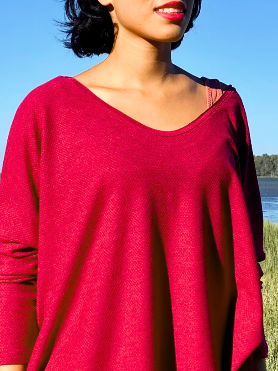 Le TeePull oversize est réversible : col rond ou décolleté en V arrondi, selon l’envie.